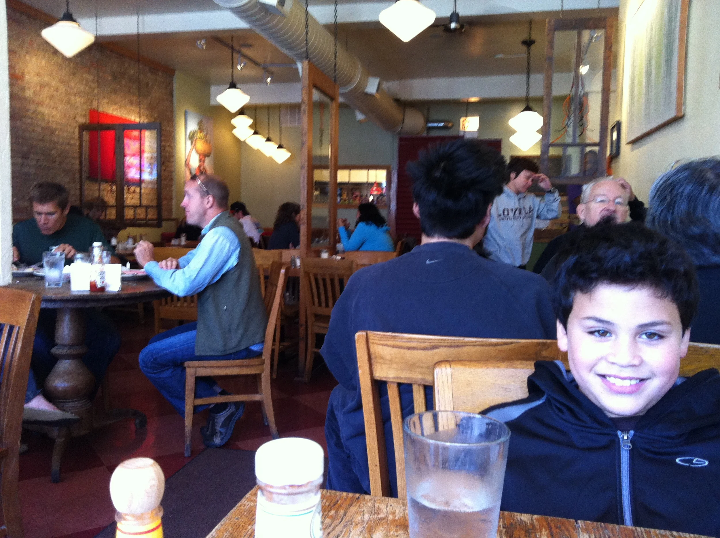 Maybe it was the bitter cold outside, the challenge of finding available parking or driving out 45 minutes for breakfast in the first place that had my son and I grateful to be sandwiched between shivering patrons in the restaurant's tiny vestibule that doubled (half the tiny) as their bakery, waiting to be seated.